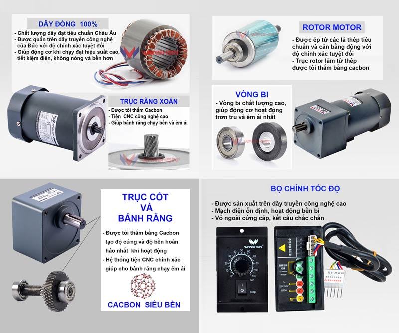 - Động cơ có tính năng điều chỉnh tốc độ, thường dùng bộ chỉnh tốc độ kèm theo